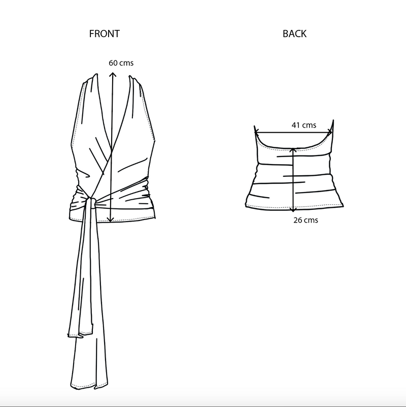 • Dos lazos laterales largos para anudar en la cintura.
