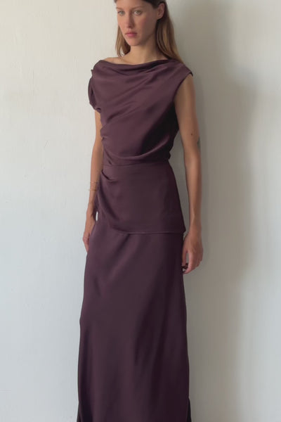 The Helene Top is crafted with a refined elegance, featuring a soft dropped shoulder that gently frames the silhouette. Subtle ruching details contour the bodice, adding texture and dimension for a flattering, feminine shape. A concealed side invisible zipper ensures a seamless fit, enhancing the top's clean and modern lines. Its asymmetrical hem adds an unexpected twist, balancing structure and fluidity with effortless charm.